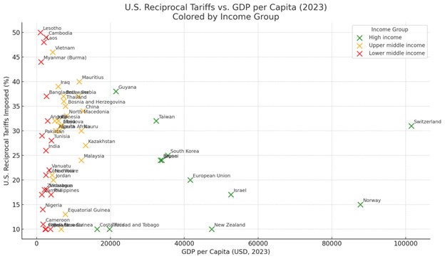Despite being the world’s largest economy — both in GDP and per capita terms — the U.S. to impose reciprocal tariffs, even on low- and middle-income countries (LMICs) with far lower economic capacity.