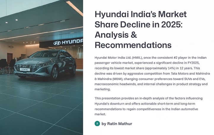 In FY2025, Hyundai Motor India recorded its lowest passenger vehicle market share in 12 years (~14%), slipping behind Tata Motors and Mahindra and Mahindra Limited [Automotive and Farm Equipment Business] & Mahindra in several months. 📉